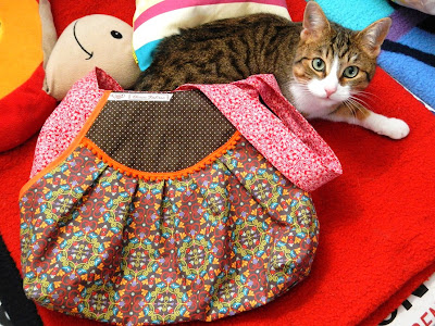 Die Tasche ist ein Tauschobjekt von Karin von Literatur und mehr. Ich habe ihr dafür aus Grannys ein Set aus Mütze und Schal gehäkelt, dabei bin ich ja der Meinung, dass sie mindestens genausogut häkelt wie ich, aber ich will mich um Gottes Willen nicht beschweren über diesen genialen Tausch gegen diese wundervolle Tasche :)