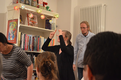 Begrüßt wurden wir durch Katrin und ihren Mann, dem wegen einem Ausfall nur mit zwei Personen anwesenden Dreigangmenue, welches aber Verstärkung aus der befreundeten Improgruppe „Alles auf Anfang“ migebracht hatte – einen Gruß aus der Küche sozusagen – und dem nicht minder wichtigen Publikum, also wir selbst.