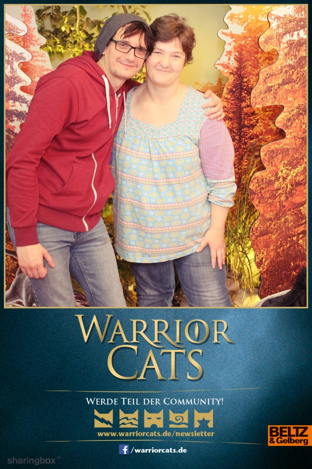 Auch der Beltz & Gelberg Verlag bot nun schon zum zweiten Mal in Folge eine Fotoaktion am Stand an, bei der ich mit diversen Begleitungen Fotos habe machen lassen, unter anderem mit meinem persönlichen „Running Gag“ Marian. Aber auch mit Julia und meiner Tochter habe ich mich in die Warrior Cats Kulisse begeben.