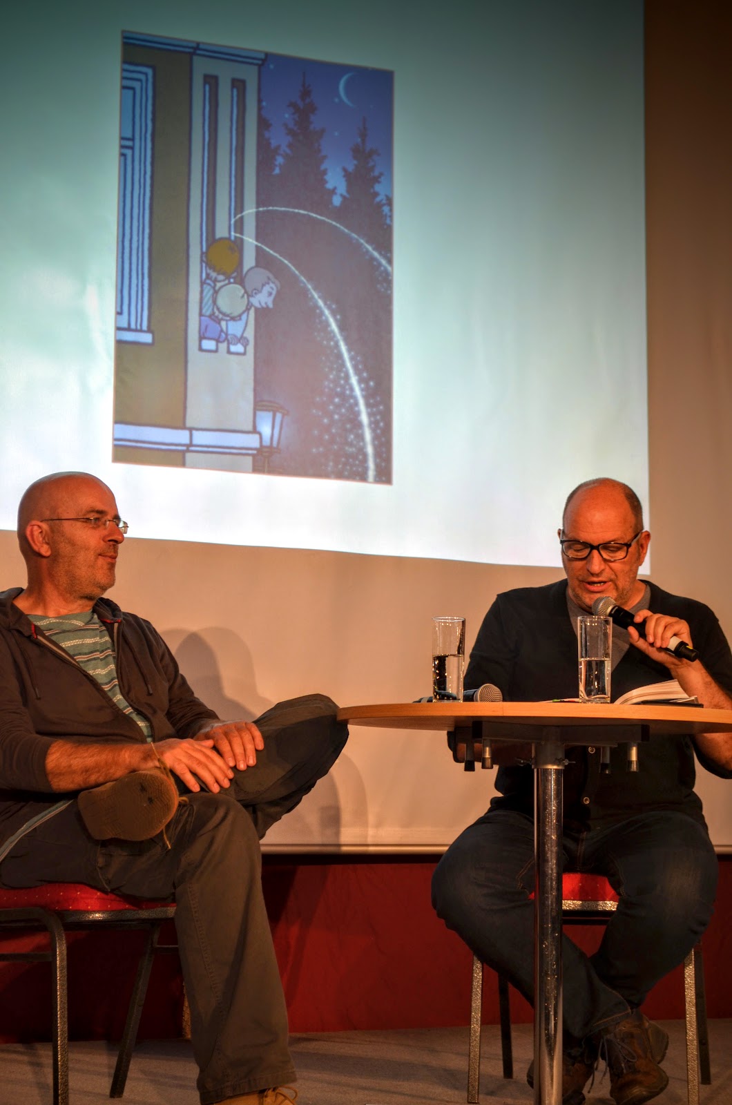 Anlässlich des 25jährigen Jubiläums von „Dirk und ich“ war Andreas Steinhöfel mit mehreren Veranstaltungen auf der Frankfurter Messe zugegen, aber auch sein Bruder Dirk, ohne den es „Dirk und ich“ nie gegeben hätte, und vielleicht auch alle weiteren Bücher Andreas Steinhöfels nicht, und der Illustrator Schössow waren in diesem Jahr in Frankfurt unterwegs.
