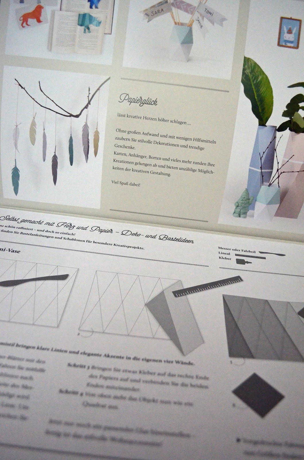Das Motivpapier „Papierglück“ hat mein Herz sogar noch höher schlagen lassen! Neben Motivpapier Bögen in der Qualität 250g/m² sind einige Seiten mit Postkartenmotiven oder Konturen zum Ausschneiden und Verbasteln bedruckt, die dazugehörigen Deko- und Bastelideen verstecken sich auf den ersten Seiten des Papierblocks.
