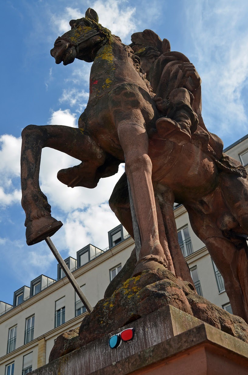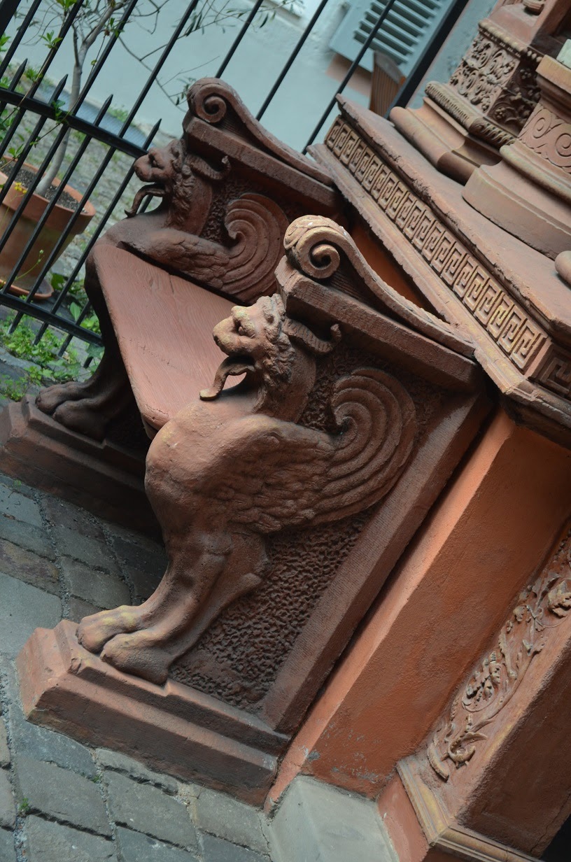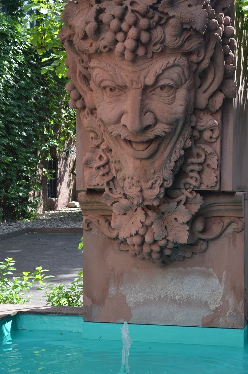 Allein wegen unserem dritten Stopp und Punkt 5 im Buch hat sich die Stadtführung gelohnt. Wir bekamen auf Privatbesitz einen wunderbaren Figurenpavillon zu sehen, wo sich früher das Atelier des Valentin Barth befand, von dem heute noch viel in Mainz zu sehen ist. Der heutige Eigentümer Dr. Kotzur erzählte sehr kurzweilig und interessant die Geschichte zu diesem Ort. Zum Glück wurde der Pavillon damals durch Privatinitiative gerettet, in den 70ern hätte er eigentlich dem Ausbau einer Tiefgarage zum Opfer fallen sollen. So etwas ist heute zum Glück kaum noch vorstellbar! Da mir der Platz so gut gefallen hat, nicht zuletzt wegen Dr. Kotzurs interessanten Ausführungen, gibt es hier mehrere Fotos zu sehen.