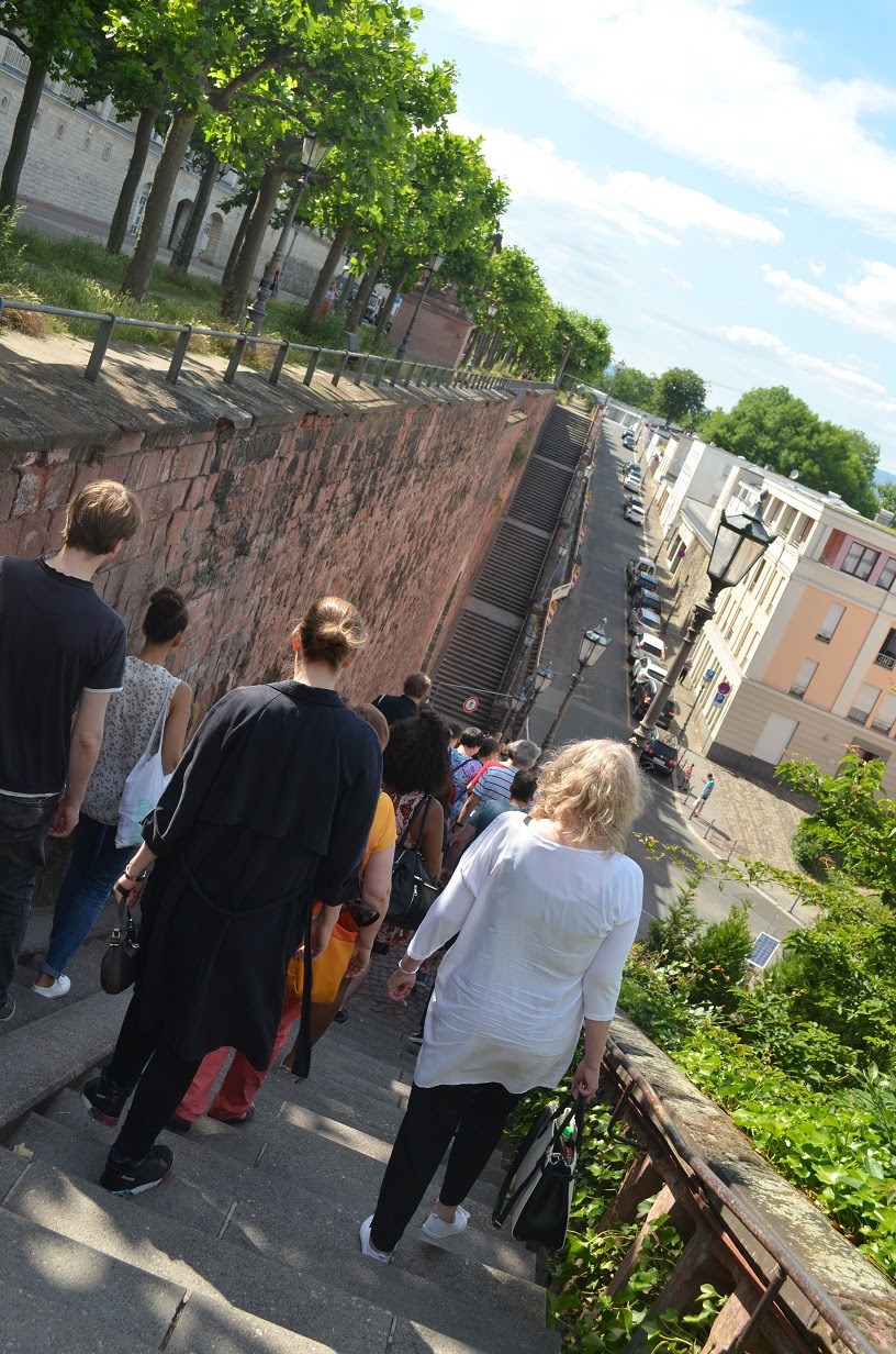 Der weitere Weg führte zum Ruhegarten der Stephanskirche, berühmt durch ihre Chagall-Fenster. Passend dazu wurde der Garten nur mit blaublühenden Pflanzen bepflanzt. Hier möchte ich noch einmal herkommen, sobald der Lavendel blüht, zudem Stefanie Jung uns ans Herz gelegt hat, unbedingt einmal die Meditationen zu den Chagall-Fenstern zu besuchen, die zweimal wöchentlich stattfinden.