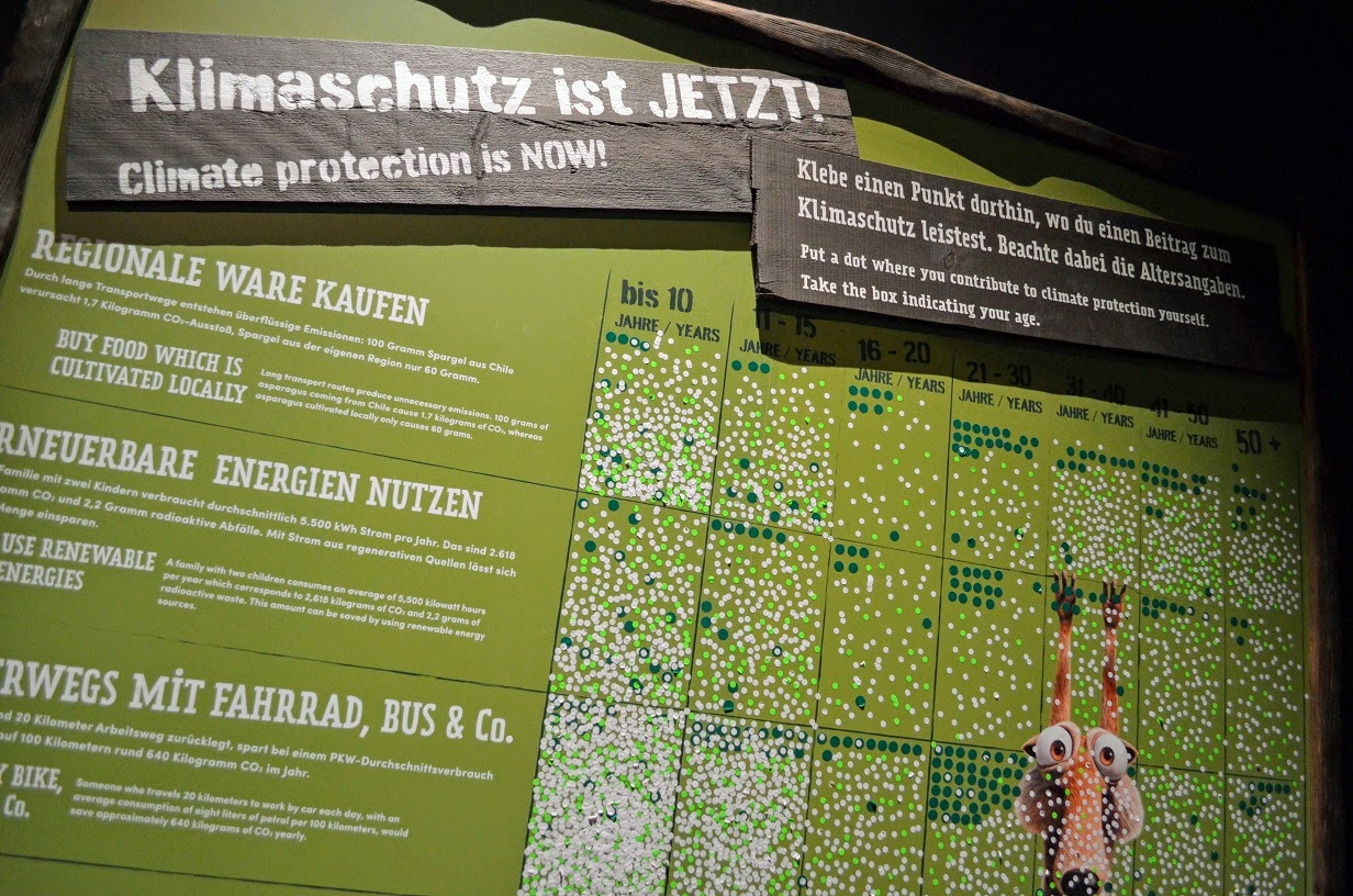 In der Sonderausstellung gab es einige Exponate zu sehen, diverse Mitmachstationen und es wurde mehrfach auf den Umweltaspekt eingegangen. Für Kinder wahrscheinlich nicht so spannend wie die Mitmachstationen, aber sehr wichtig! Damit für das jüngere Publikum ein Anreiz da war sich mit dem Umweltaspekt näher zu beschaffen, haben sich die Ausstellungsverantwortlichen aber auch Sachen überlegt, wie die Besucher aktiv in diese Stationen einbezogen werden können.